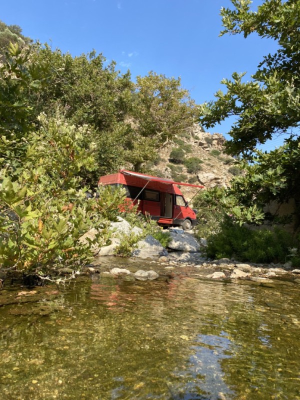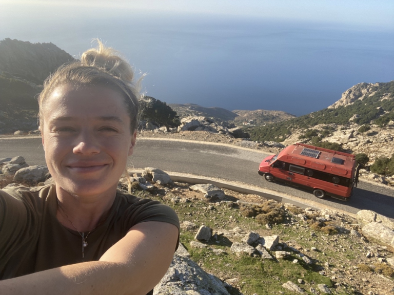 Nach 11 Jahren in Berlin, habe ich, Godiwa Jung, meine Koffer gepackt. Seit Oktober 2021 lebe ich mit einem roten Kater in einem roten Bus auf der roten Insel Ikaria. Die Insel der Hundertjährigen liegt in der nördlichen Ägäis. Von hier aus arbeite ich als Mediatorin und systemischer Coach und lebe ein klassisches Leben als digitaler Nomade.